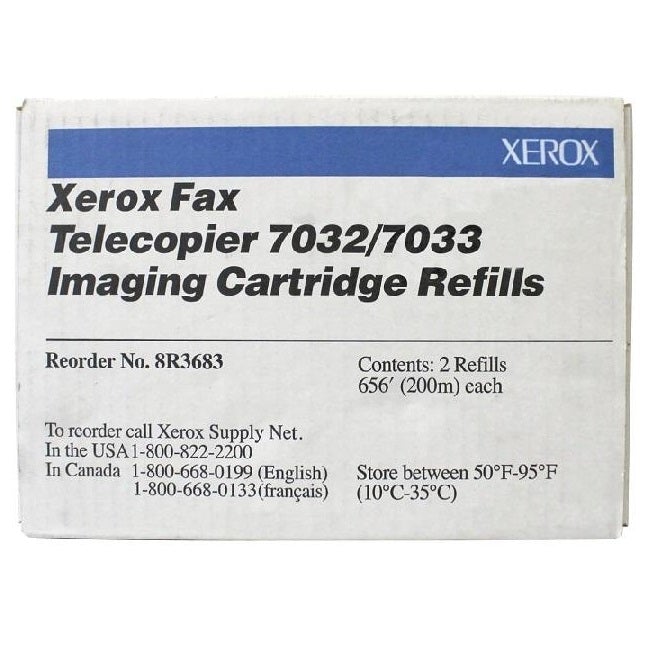 Xerox 8R3683 Thermal Ribbon Refill is used for the Xerox 7032, 7033 fax machines. Xerox brand supplies work best for your Xerox fax machines and make using Xerox ribbons makes them last longer. These economical yet high-quality Xerox 8R3683 Thermal Transfer Ribbons will be the perfect solution to help you to save the printing cost. The cartridge is made from all new components, and it will be compatible with your Xerox printer models without any problem when you are replacing your current Ink or Toner Cartridge.